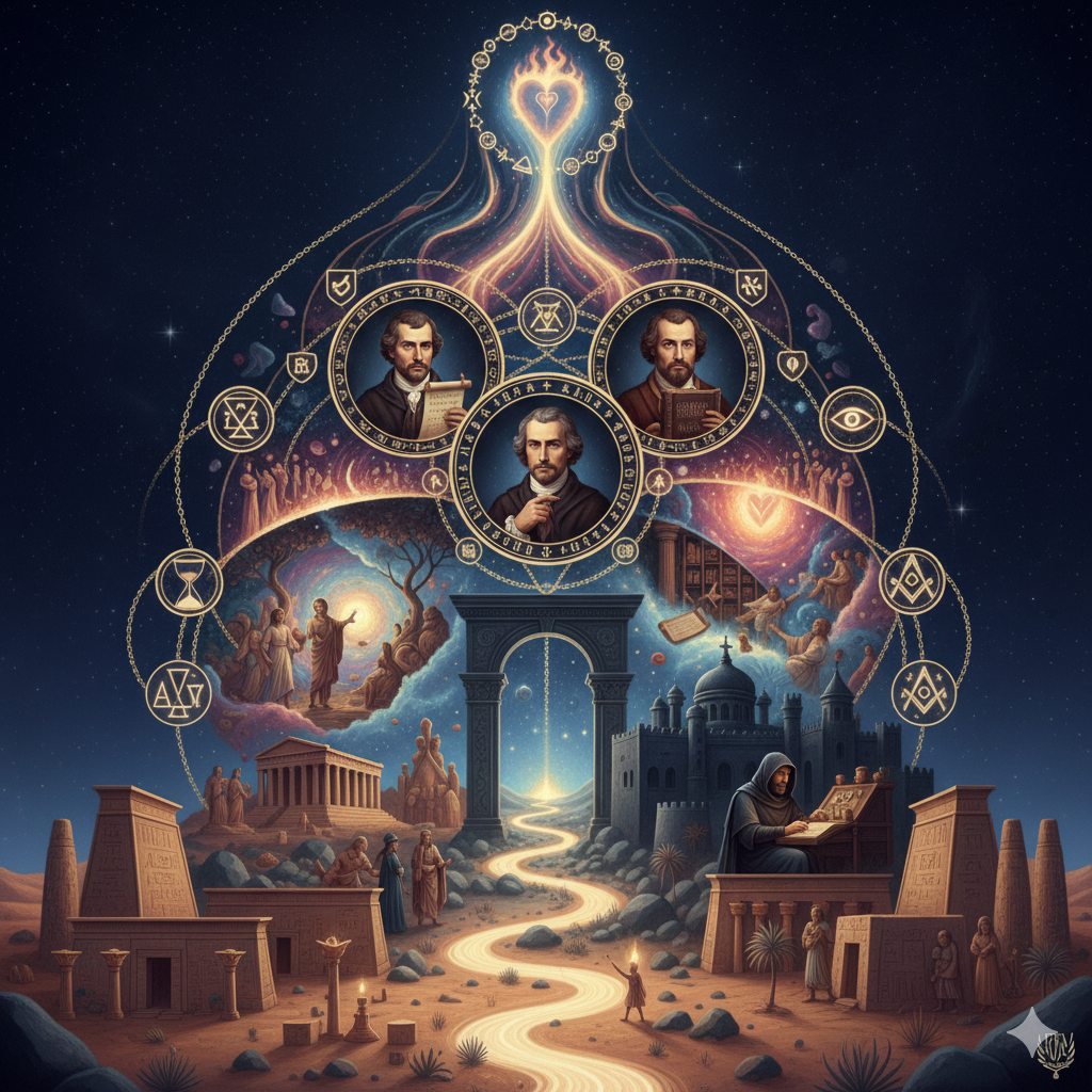 Es en este momento crucial, en la Francia del siglo XVIII, donde se configuran los vectores directos de nuestra herencia. Martínez de Pasqually (c. 1727-1774) funda la Orden de los Caballeros Masones Elegidos Coëns del Universo, estableciendo la doctrina axial de la Reintegración. Su discípulo, Louis-Claude de Saint-Martin (1743-1803), realiza la transposición esencial hacia la "Vía del Corazón", interiorizando la obra. Paralelamente, esta enseñanza llega a Rusia, donde, a finales del mismo siglo XVIII, pensadores como Nikolai Novikov e Ivan Lopukhín la fusionan con la profundidad de la teosofía de Jakob Böhme y el hesicasmo ortodoxo, creando la corriente del Martinismo ruso: una "Iglesia Interior" centrada en la experiencia crística directa y la ascesis silenciosa.